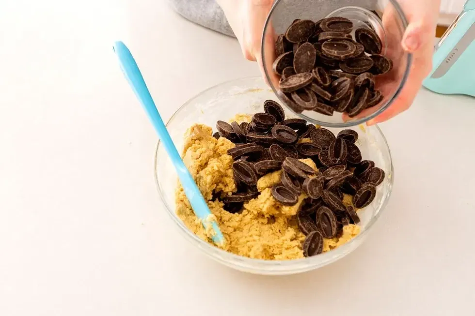 5. Drop chocolate pieces in and incorporate them without breaking them.