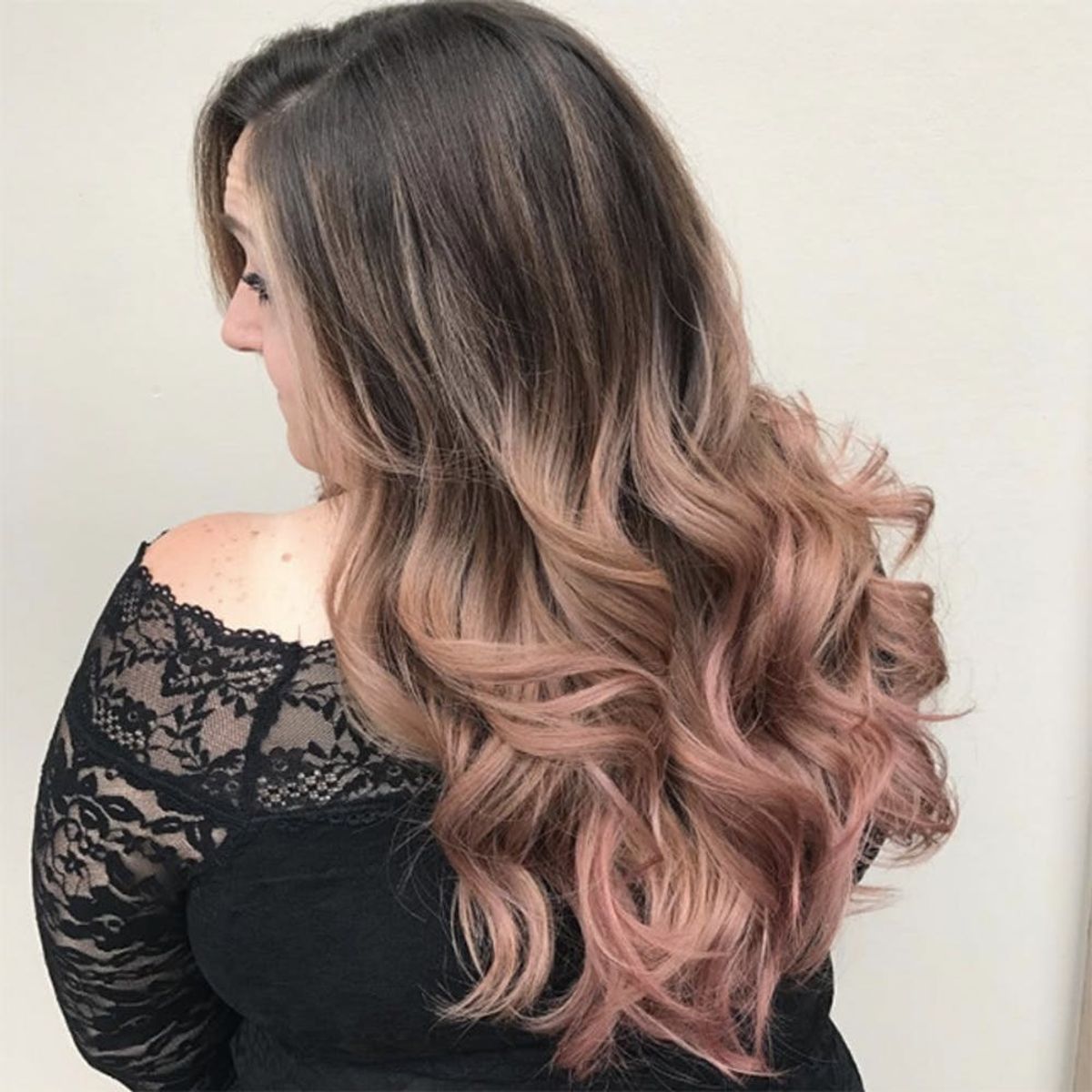3. Two-Toned Curls: Add dimension to your ‘do by starting your rose gold color about halfway down. Keeping things darker on the top and lighter on the bottom allows the hues to grow out beautifully, making for a low-maintenance style.