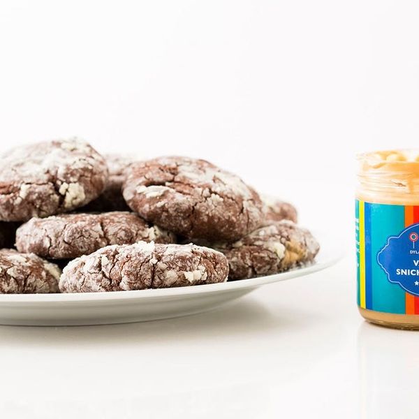 Vanilla Snickerdoodle Chocolate Crinkle Cookies?! Say that five times fast! ;) We’re kicking the holidays into high gear at Brit HQ… and that means LOTS of holiday baking! We teamed up with Dylan’s Candy Bar to bring you the ultimate cookie recipe for winter. Y’all ready for this? We’re making Chocolate Crinkle Cookies filled with Vanilla Snickerdoodle Spread. Read on for the recipe.