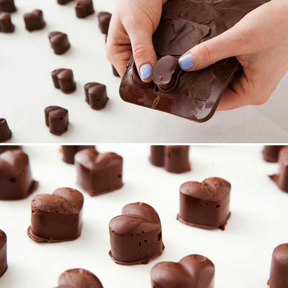 Refrigerate for 30 minutes, or until firm. Pop out your heart chocolates.