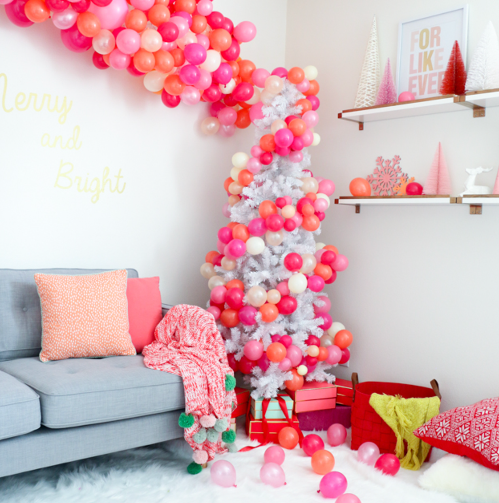 Simple, colorful, and DIY — all of our favorite things! This easy balloon backdrop will transform any blank wall — and the tree! — into a breathtaking party scene. (via A Kailo Chic Life)