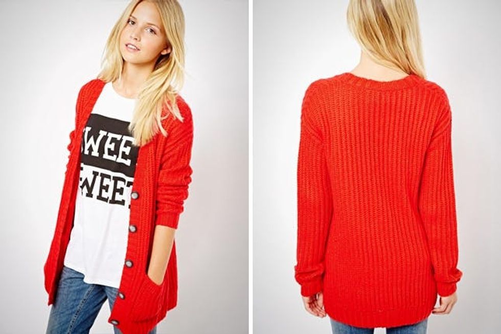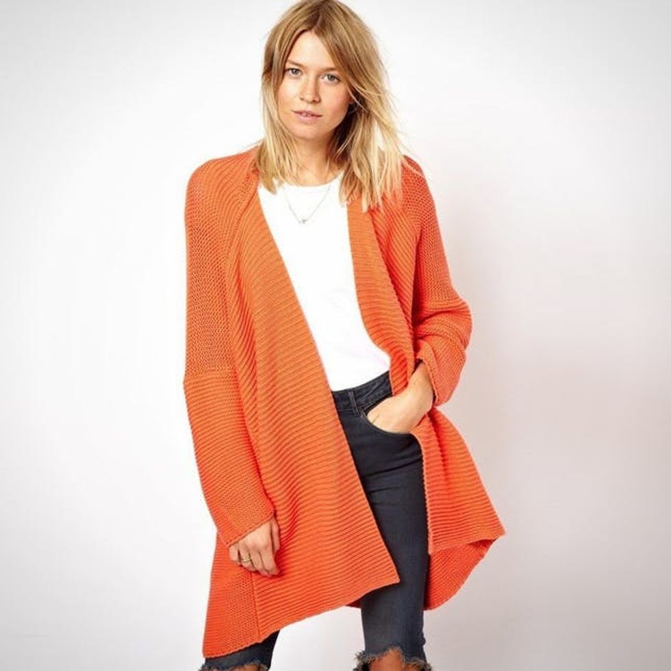1. Asos Blanket Cardigan ($55): Dreary gray skies putting a damper on your mood? This rusty orange color will perk things right up, and pairs great with dark jeans.