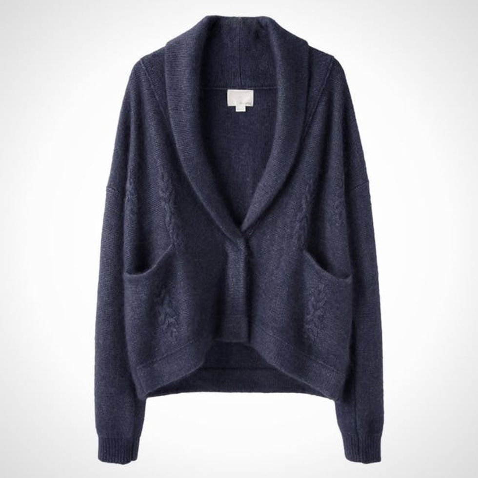 3. Band Of Outsiders Chunky Cable Cardigan ($396): This oversized navy cardigan is perfect for those freezing cold temperatures. We are loving the shawl collar and slouchy pockets.