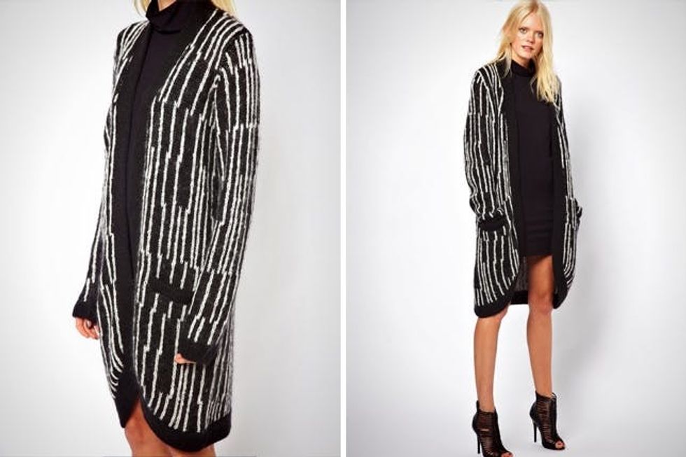 8. Just Female Patterned Long Cardigan ($167): Love the graphic aesthetic? Go black and white with this lengthy piece. The thin lined pattern creates a subtle texture that will look great with any outfit.