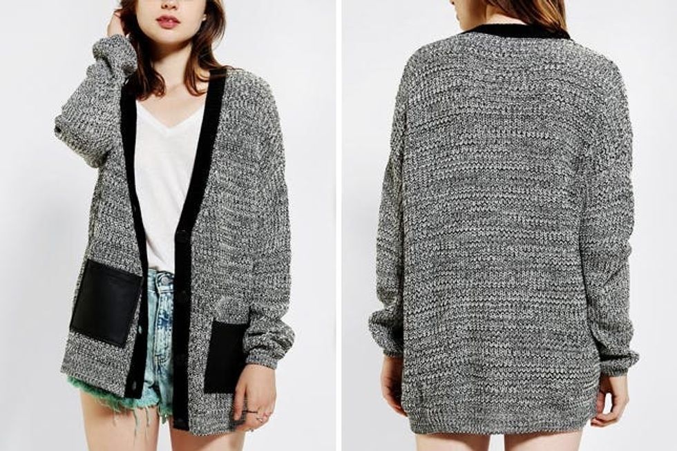 19. Vegan Leather Pocket Cardigan ($59): This sweater is a modern take on the classic varsity sweater. What is great about this one is the front leather pockets. Let’s be honest, they look great paired against the gray knit.