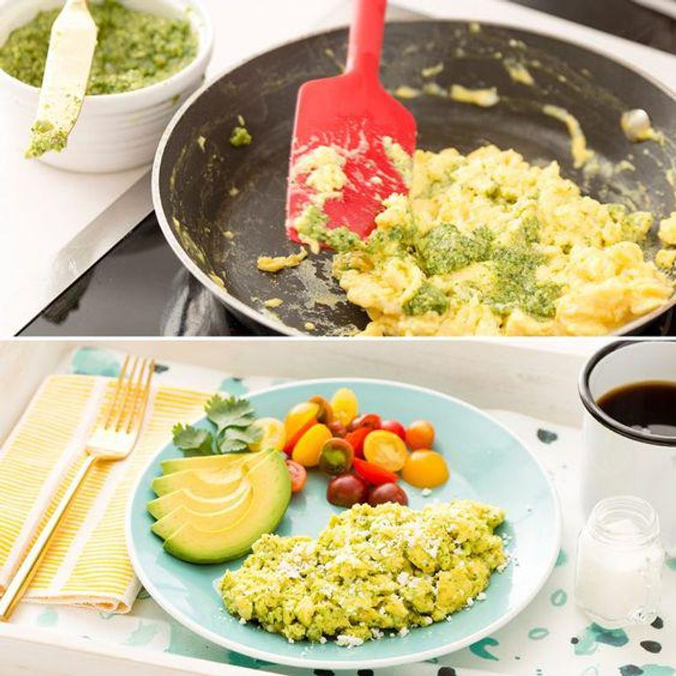 Add a heaping scoop to scrambled eggs, top off with a bit of the extra cotija cheese and you’ll have eggs so green that even Sam-I-Am will want a taste.