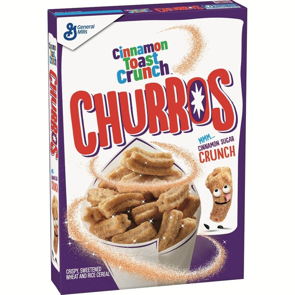 This cereal is comprised of bite-sized, puffed wheat-and-rice churros, dusted with real cinnamon-sugar.