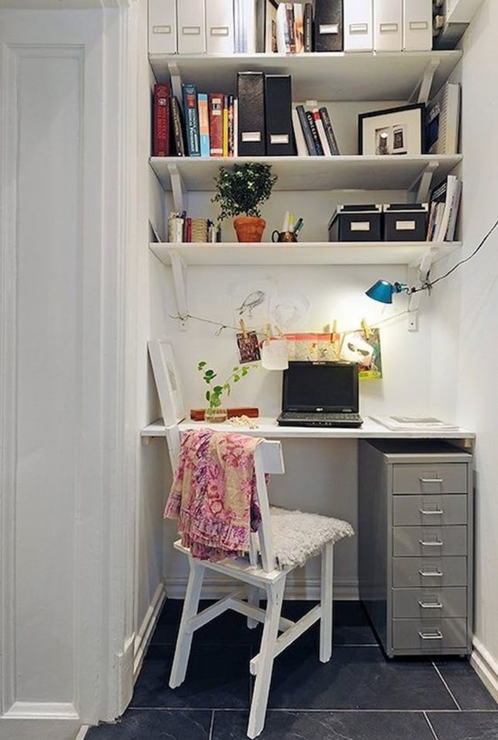 2. A Desk: There's no need for a big, hulkin' desk if you're short on space. Go for a petite desk, and when your work is done, you can just close the door on your office. (via A Thoughtful Place)