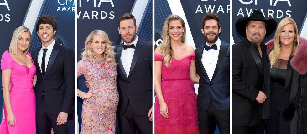 Country music's best and brightest took over Nashville's Bridgestone Arena on Wednesday, November 14, for the 2018 CMA Awards. This year's show was hosted (for the 11th time!) by Carrie Underwood and Brad Paisley, with performances by nominees including Luke Bryan, Maren Morris, and Kelsea Ballerini — all of whom made it a date night with their significant others. Click through to see the cutest red carpet couples from country music's biggest night! (Photos via Jason Kempin/Getty Images)