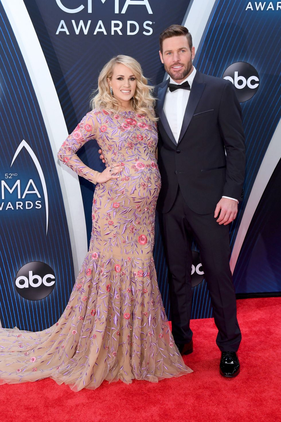 Carrie Underwood and Mike Fisher: Underwood — who's co-hosting the awards show for the 11th time with Brad Paisley, and is also nominated in two categories — stunned in a blush-colored gown as she walked the carpet with her hockey player husband. The couple are expecting their second child together. (Photo via Jason Kempin/Getty Images)