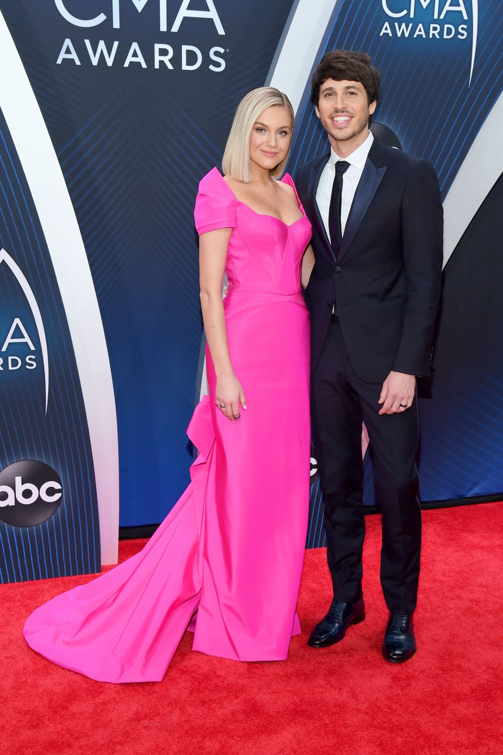 Kelsea Ballerini and Morgan Evans: The "I Hate Love Songs" singer, who's nominated for Female Vocalist of the Year at the 2018 CMAs, turned heads in hot pink as she walked the carpet with her husband of almost a year. (Photo via Jason Kempin/Getty Images)