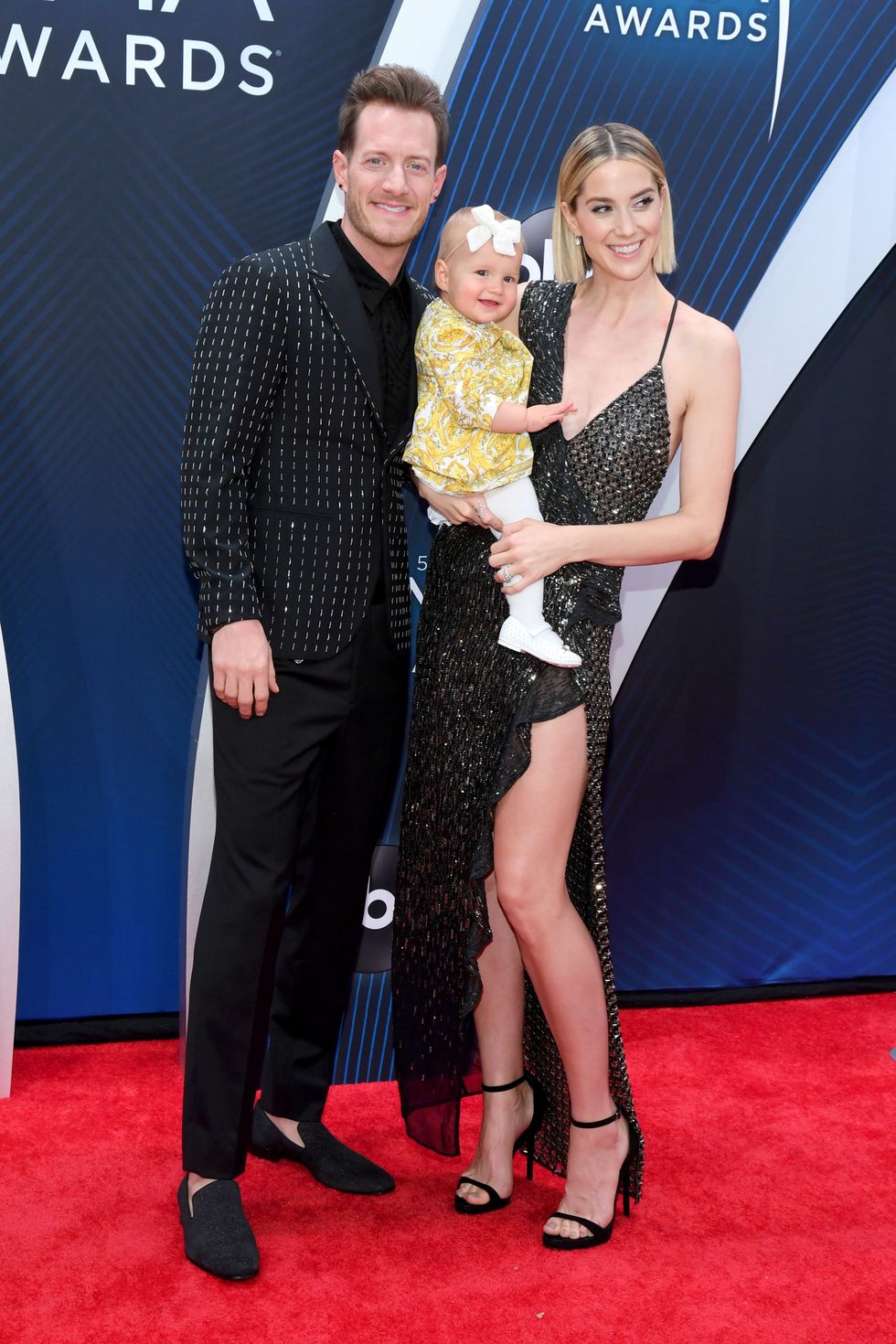Tyler and Hayley Hubbard: The Florida Georgia Line musician and his wife, Hayley, made it a family night with daughter Olivia Rose, who turns one year old in December. (Photo via Jason Kempin/Getty Images)
