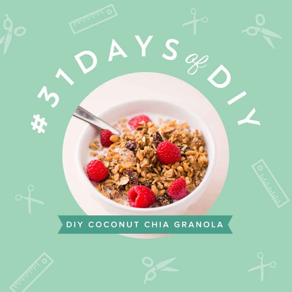 Eat healthy and exercise more. We’re betting these are a few of your New Year’s resolutions. Well, we’re right there with ya AND here to help you reach your goals. As part of our #31DaysofDIY series, we’re going to show you how to make Coconut Almond Chia Granola. Bonus: You can make granola bars or cereal (or both!) with this recipe. Packed with nuts, seeds, dried fruit and more, this granola is the perfect post-workout power-up!
