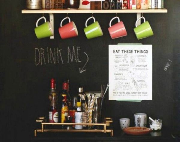 11. Chalkboard Wall: Don’t you love the chalkboard wall on this coffee/breakfast bar? We think the wooden shelves add a great rustic accent. Have your French press and chemex ready and you’ll be sure to impress all your coffee geek friends. (via Thrifty Decor Chic)