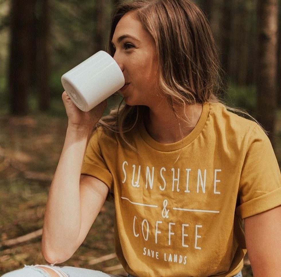 Sunshine & Coffee Tee ($35): Save Lands plants 12 trees for every tee, all ethically sourced, printed, and shipped in the United States, sold.