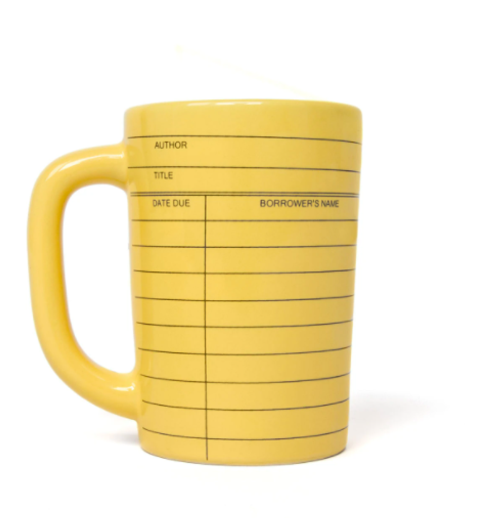 Library Card yellow mug ($12): Kick it back old school with a library card-inspired mug for your bookish coffee drinker.