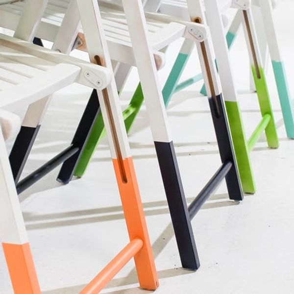 We had extra wooden folding chairs laying around so we decided they would be the perfect candidate for our color blocked fiesta party.