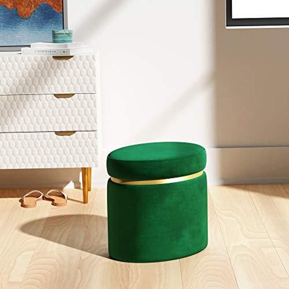 See it on AmazonAn Oval Upholstered Storage Ottoman "That Combines Glamour With High Function"