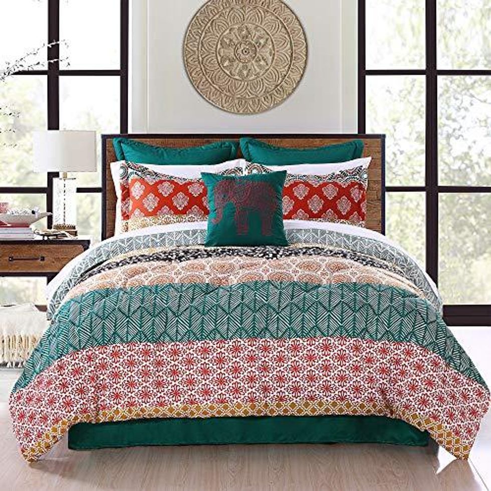 See it on AmazonA Bohemian Stripe Comforter With Expertly Combined Floral And Geometric Patterns