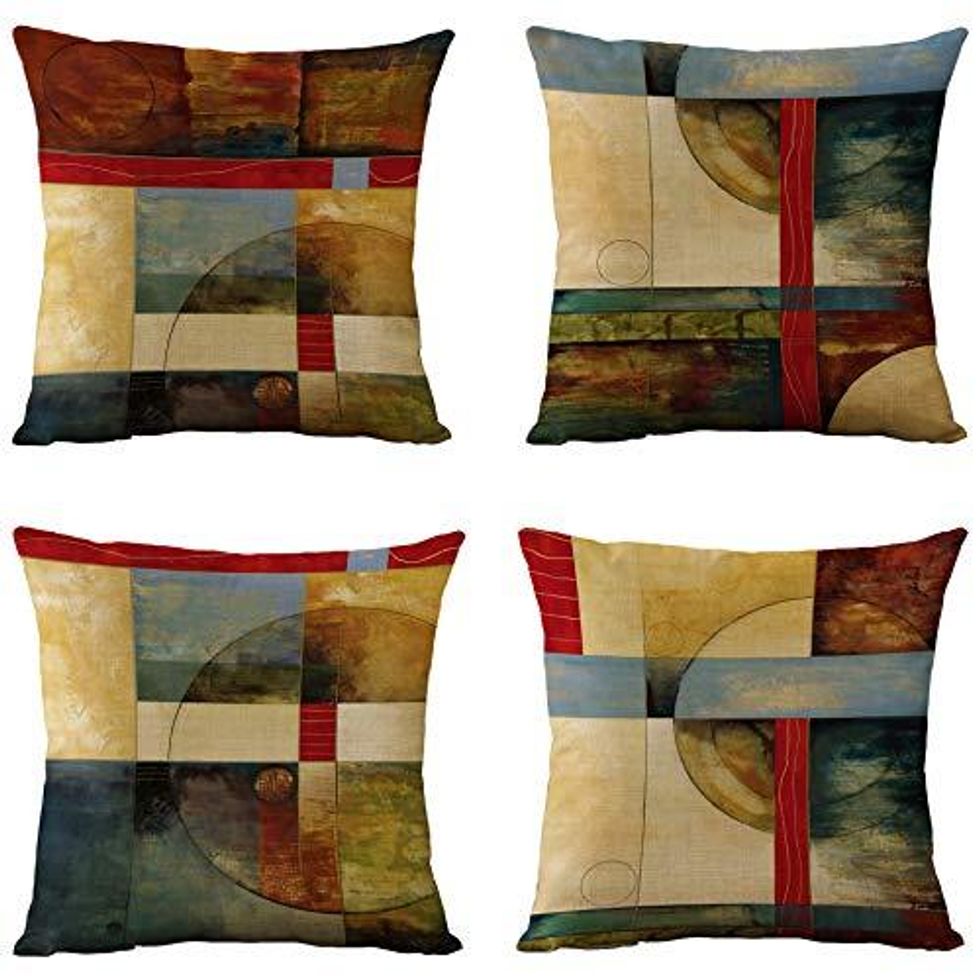 If you have some perfectly good throw pillows that you're tired of, new Pillow Covers are the ideal solution. The Set of 4 Throw Pillow Covers is made of durable linen that has a colorful vintage geometric pattern. Please note that the pattern is only on the front side, the back is a solid color.