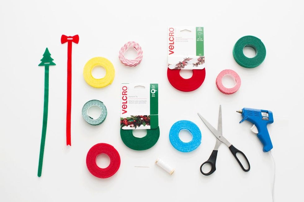 As I’m sure you’ve guessed, we are pumped for the holidays. It’s the perfect time of year to DIY everything. And the best part is giving handmade presents to your loved ones. In addition to your made-with-love gift, we’re going to show you how to make your very own toppers to personalize your gift wrap. We’ve teamed up with Velcro Industries to make some primo bows out of, you guessed it — VELCRO® Brand tape!