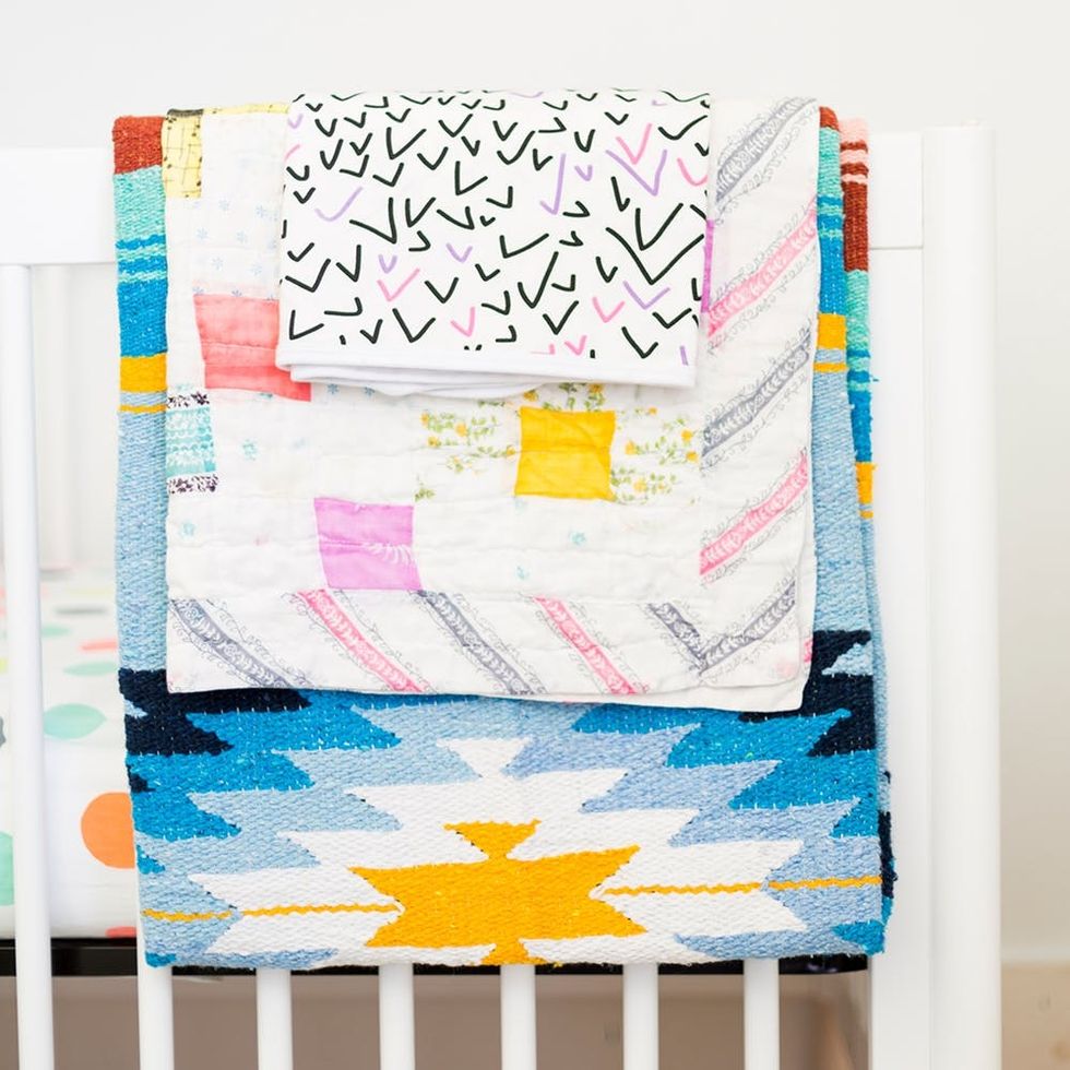 I’ve always been drawn to every hue under the sun, but have mixed feelings about pink. Specifically the bubblegum pastel pink associated with the Easter Bunny and baby girls throughout history. Maybe it was my ballerina sheets (still in my bedroom at my mom’s house), maybe it was my rejection of ballet classes in favor of tap and jazz — whatever the root, I knew I didn’t want to go too traditionally girly on this nursery. For my baby shower, my mom gifted me a quilt that my grandmother made for my nursery. And voila, a color palette was born.