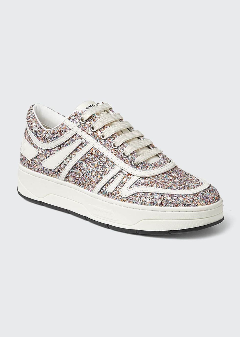 JIMMY CHOO Hawaii Glitter Glow-In-The-Dark Sneakers ($495): Coffee runs will never be the same. These super cute rainbow sneakers remind us of confetti and offer endless outfit possibilities.