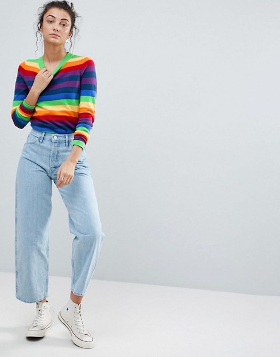1. ASOS Tall Sweater in Bright Stripe ($35): Taste the rainbow with a ROYGBIV stripe sweater that’s as big on pride as it is on hipster flair.