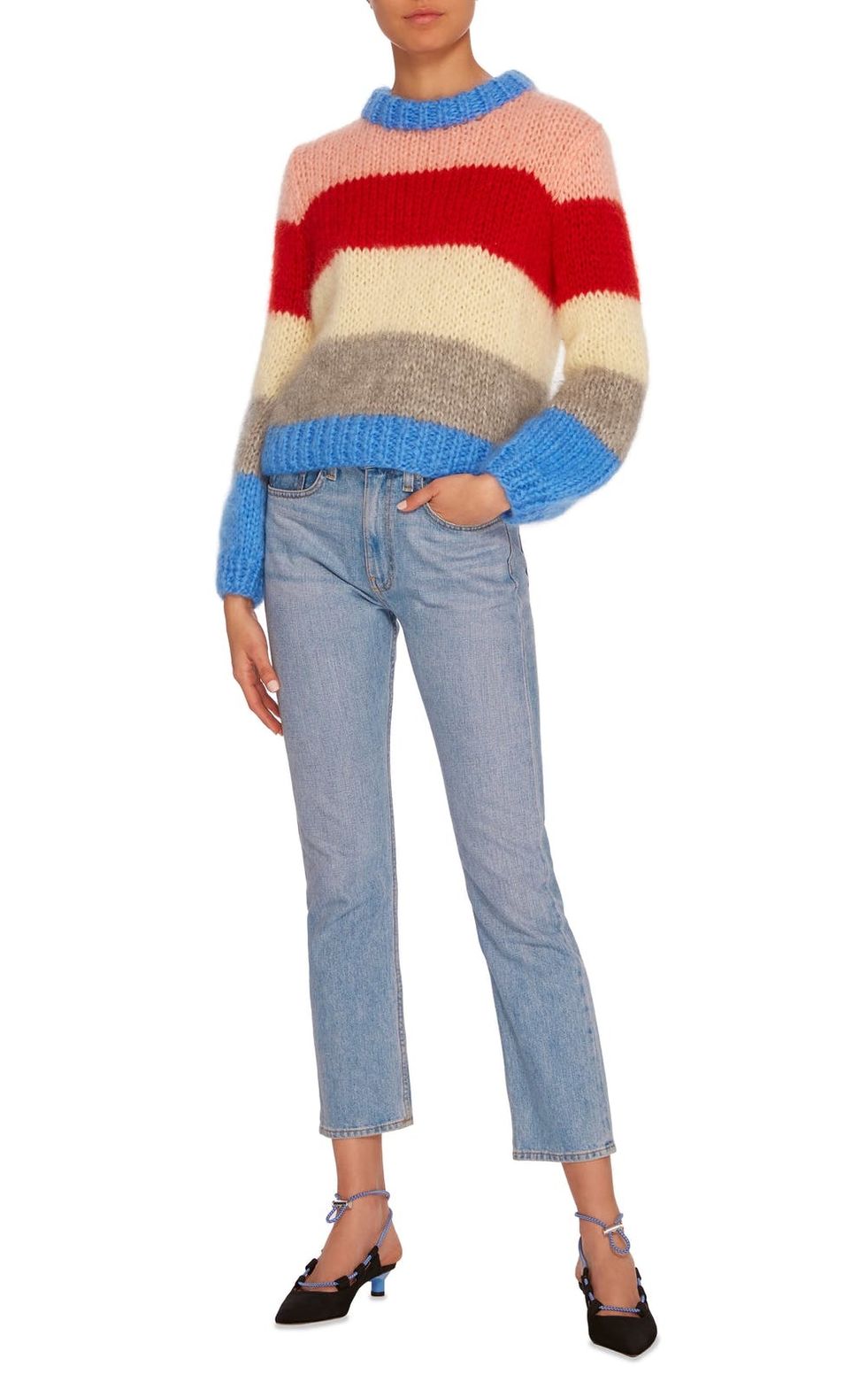 7. Joie Haady Color Block Stripe Sweater ($288): C’mon get happy with THE It-girl-approved block-striped sweater of the season. Ubiquitous Gucci mules (the ones with the horsebit hardware), we’re coming for you next.