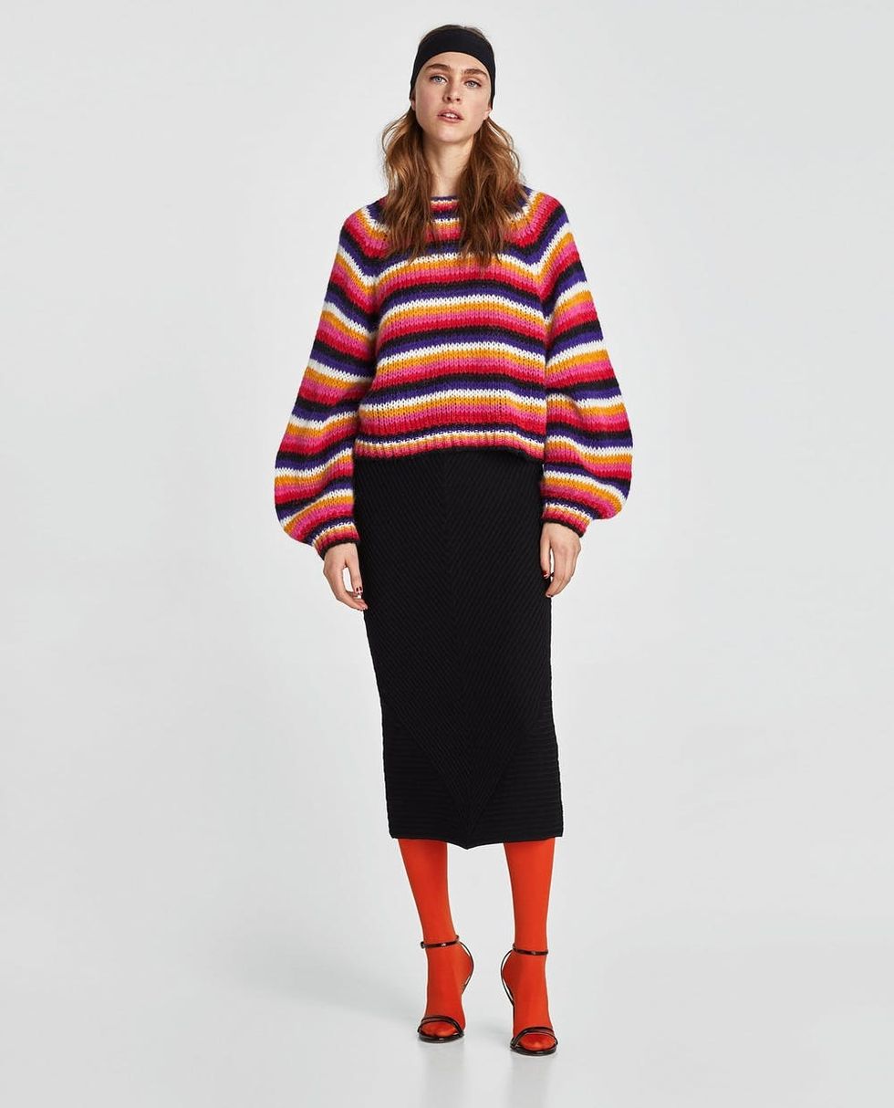 9. Zara Multicolored Striped Sweater ($50): Having a bohemian moment, TYVM. It’s the voluminous sleeves, throw-on-and-go silo, and eclectic palette that will have you channeling your inner Olsen twin this winter.