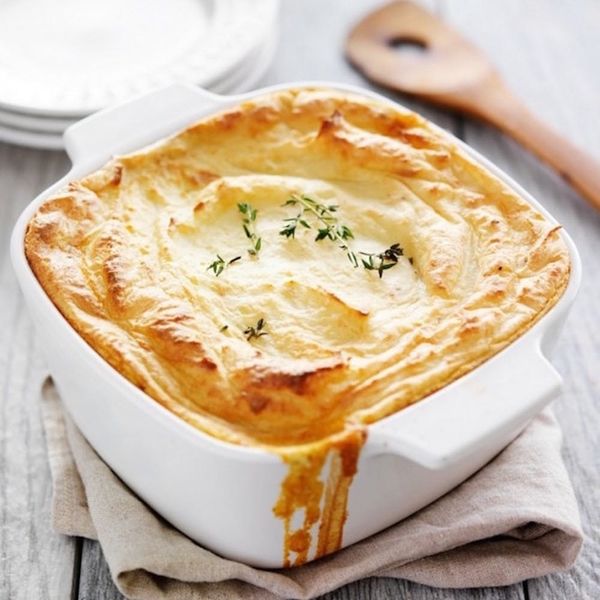 Some people need to have hot sauce with every meal, and this chicken pie definitely brings the heat. Top with blue cheese mashed potatoes to cool things down, and you’ll have a perfect Buffalo balance. (via Flying on Jess Fuel)