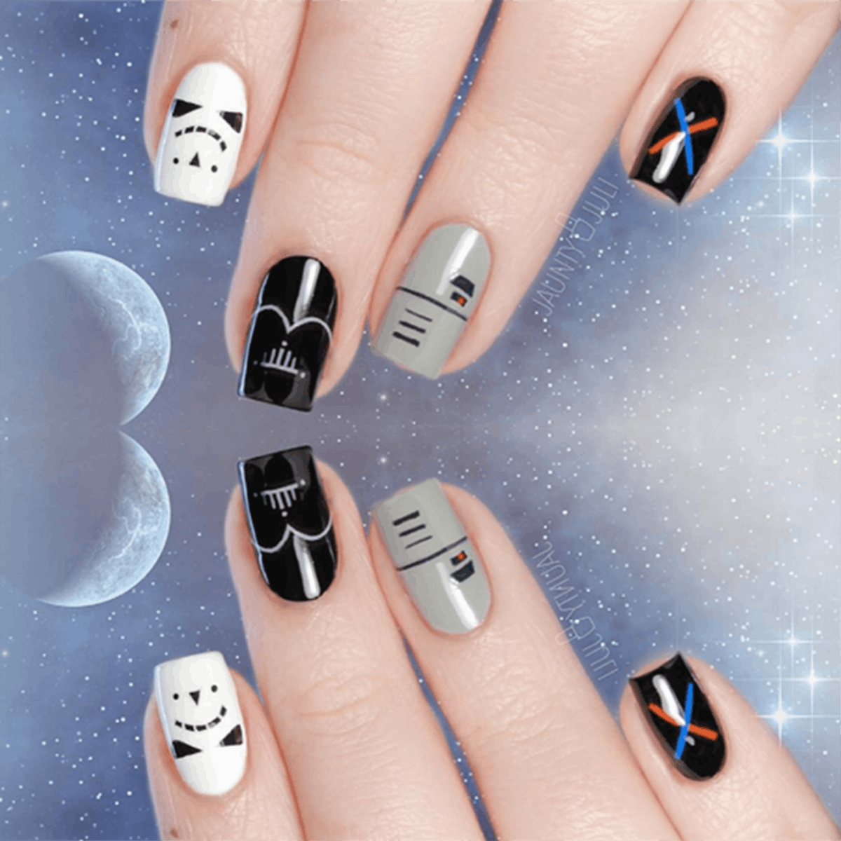 1. Star Wars: Embrace the dark side with these Star Wars digits. This mani is just what you need to hold you over until Star Wars: Episode VII arrives in 2017. You’re welcome.