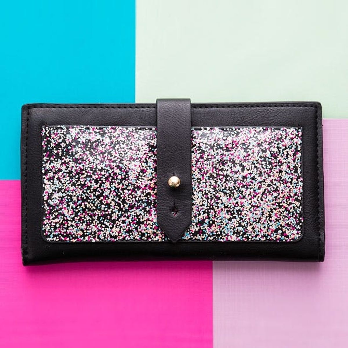 What makes us fall in love with this nail polish is the color scheme! Tan, black, teal, fuchsia – HELLO!! That will look bomb layered on top of any color!