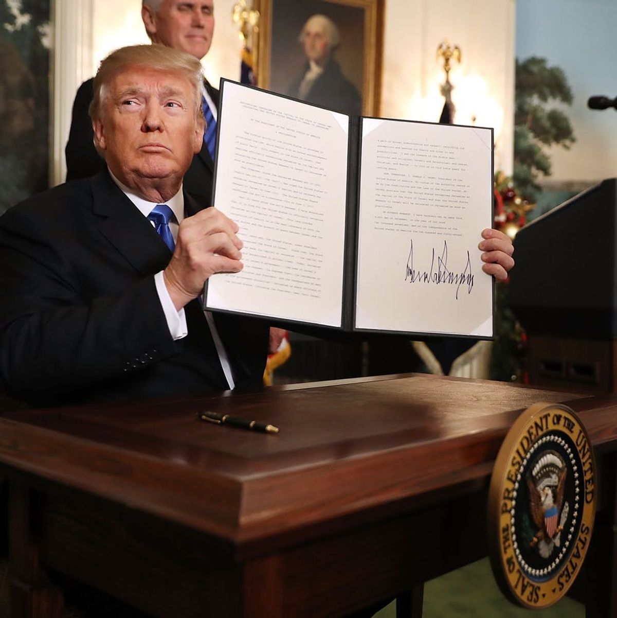 In his announcement, Trump referred repeatedly to the Jerusalem Embassy Act. Passed by Congress in 1995, the Act allocated funds to finance the embassy’s move from Tel Aviv to Jerusalem. Though the Act was never implemented by Clinton, Bush, or Obama, the sitting president must currently sign a waiver every six months to keep the embassy in Tel Aviv.