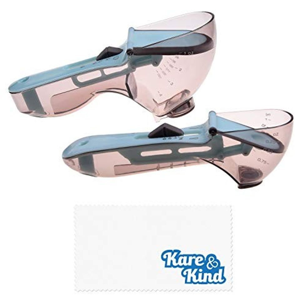 Instead of taking time to go through numerous measuring tools get out the adjustable measuring cups and fill them to the level you need. They adjust for large and small portions in one excellent design.