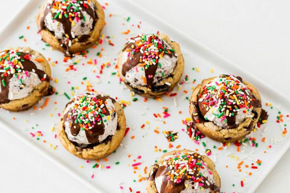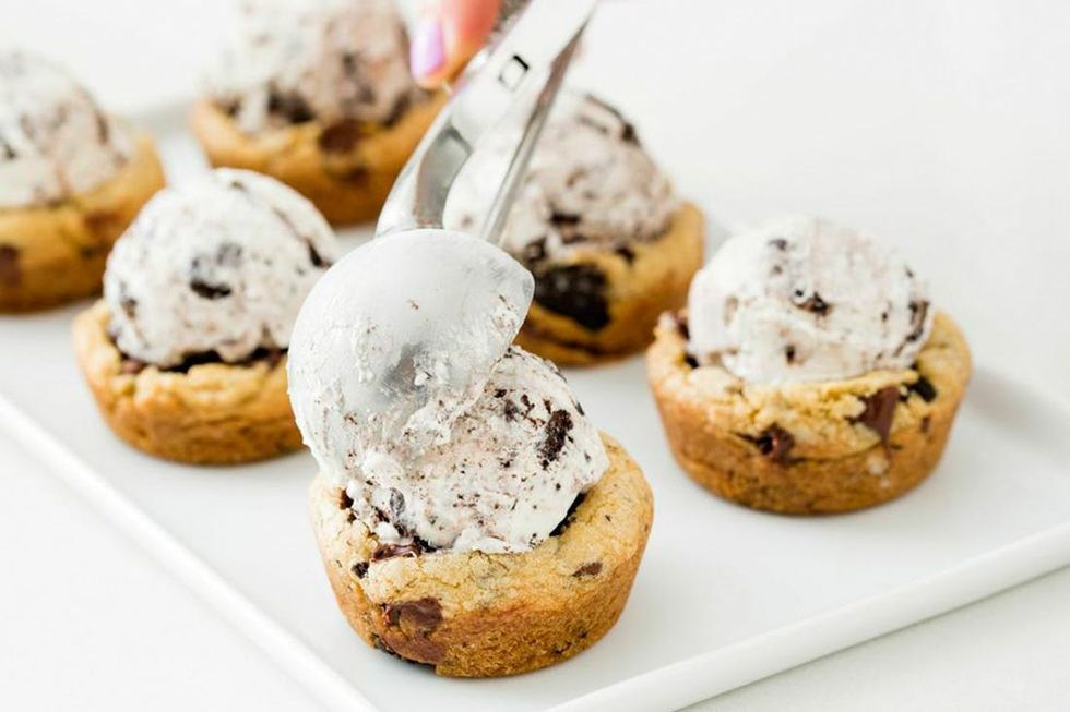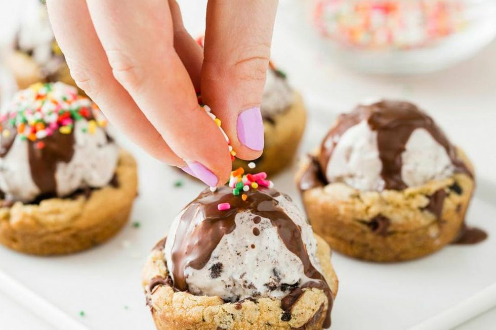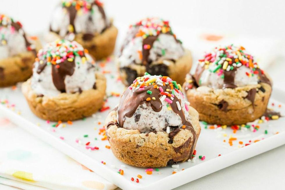 - Remove ice cream from the freezer. Fill each cookie cup with one scoop of ice cream. Top with magic shell and sprinkles. Enjoy!