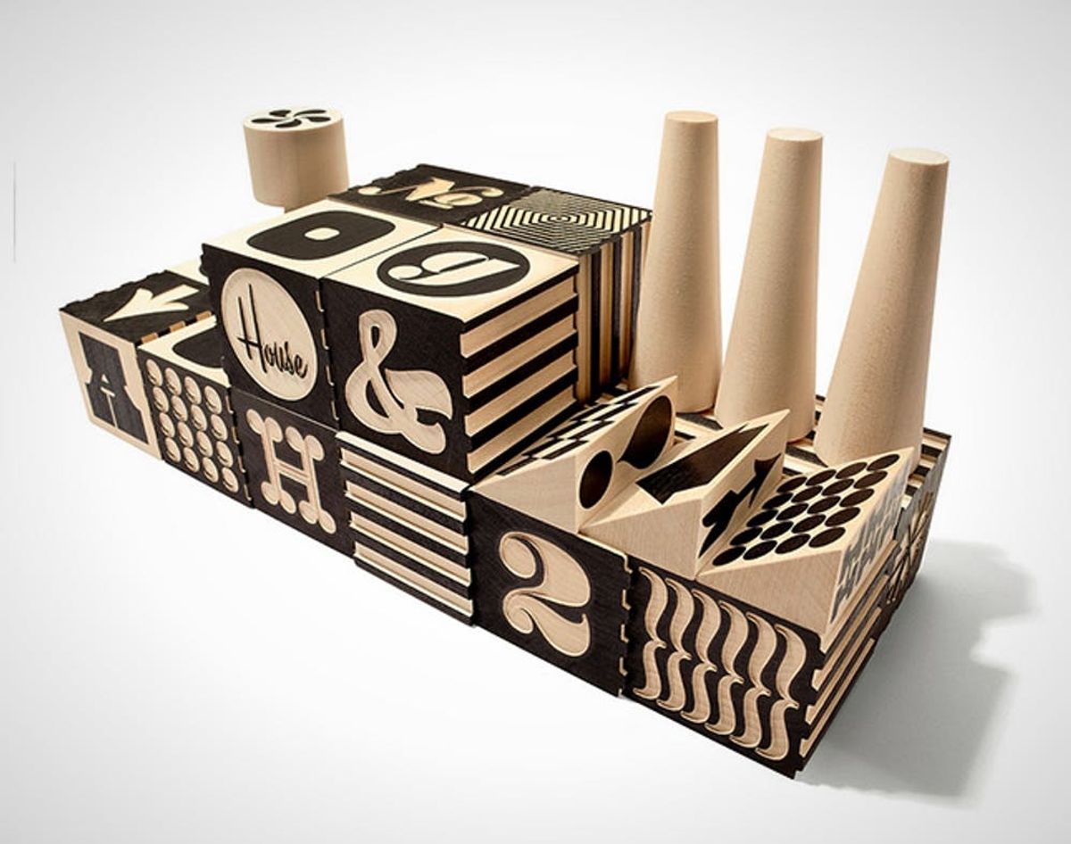 13. Alphabet Factory Blocks ($70): When did building blocks become the coolest graphic toys ever? These blocks are as chic as they get with sleek black geo prints, textured cutouts, and those fonts!