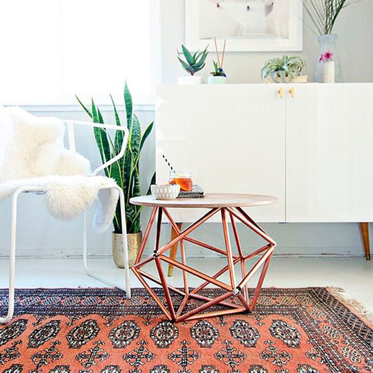 10. Himmeli Copper Side Table: This intricate-looking side table is actually easier to make than it seems. Based on the Nordic Himmeli technique for making Christmas decorations, hollow copper tubing is arranged together in a geometric pattern with white twine. (via Brittany Makes)