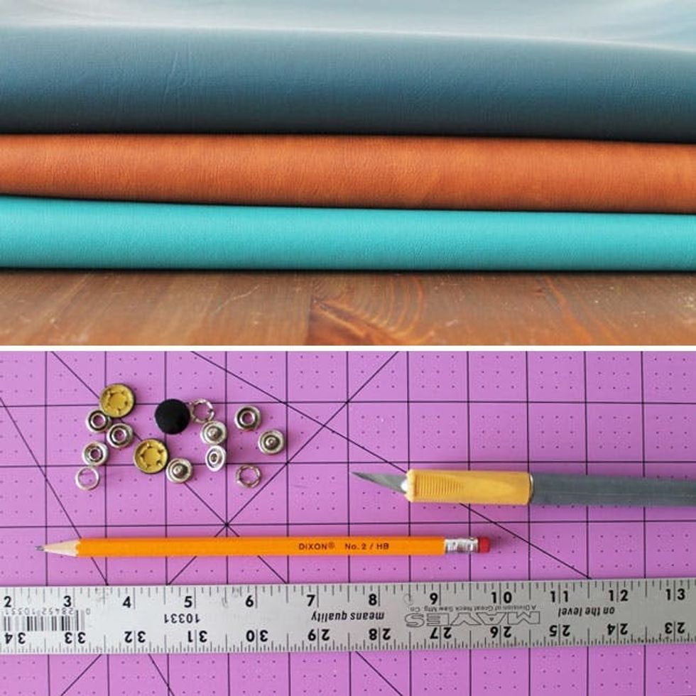 Cut your piece to size. We’ll start with the medium. The nice thing about cutting fake leather is that you can use an xacto knife and a metal ruler to get super straight lines. Win!