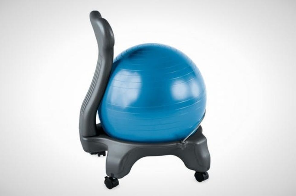 2. Gaiam Balance Ball Chair ($100): Part exercise and part balance-builder, this ball-based chair employs the same ball used in your workout routine but outfits it with an adjustable support bar, easy-glide casters, an air pump, and a desktop guide to keep you moving. This will help keep your spine aligned, and is said to improve overall well-being.