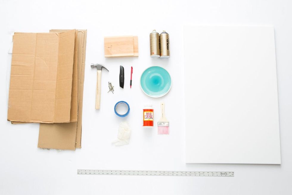 4. Spray paint your canvas. You can use one or two colors for your design. Let dry and then remove the tape. You can also spray paint the wood legs of your board.