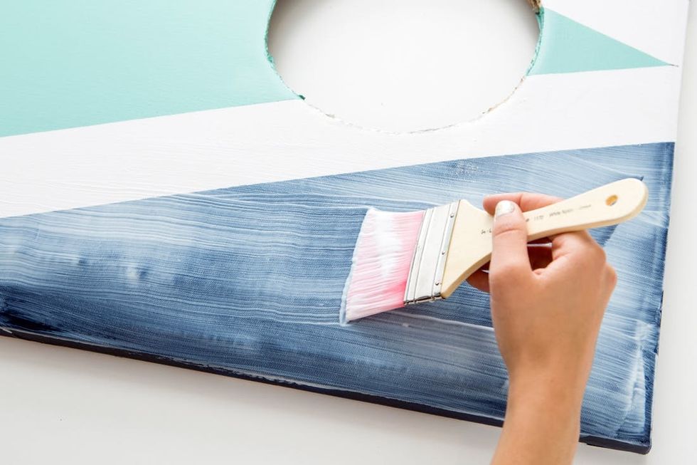 Cornhole is great, but the boards are too freakin’ heavy! All of that plywood and 2x4s really rack up the weight. Step one of this cornhole hack is to use an art canvas from your local craft store as the cornhole board. It cuts the weight in half! Part two of the hack is to use a plate to trace The Hole. To do that, measure the canvas and create a square in the center, 4 inches from the sides and 8 inches from the top. By making a square, you will be able to lay the plate in the center without having to line up center points. You’re welcome ;)