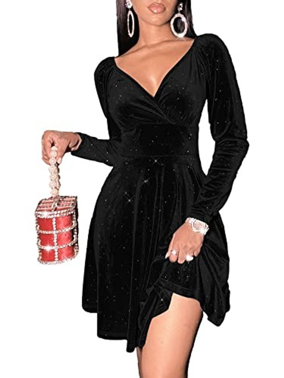 See it on AmazonSparkle in a Sexyasasii Womens Wrap V Neck Long Sleeve Velvet Glitter Dress