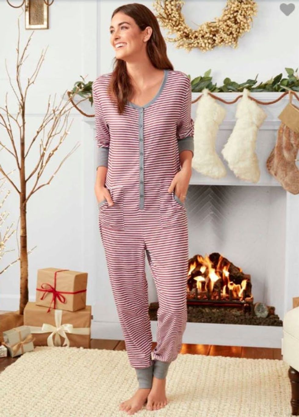 The temps are dropping and the sun is setting early, which can only mean one thing — it's time to cuddle with anything soft, fuzzy, or cozy that’s within your reach. Nothing makes days (and nights) spent in front of the fire (or TV) more delightful than a selection of loungewear that doesn't compromise cute for comfort. You’ll want nothing more than to live in these fashionable flannel pajamas, snug onesies, and a very special pair of slippers until summer comes back around.