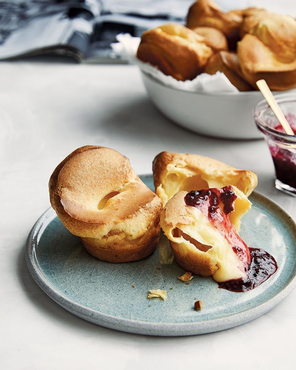 Fluffy POPOVERS With Melted Brie & Blackberry Jam