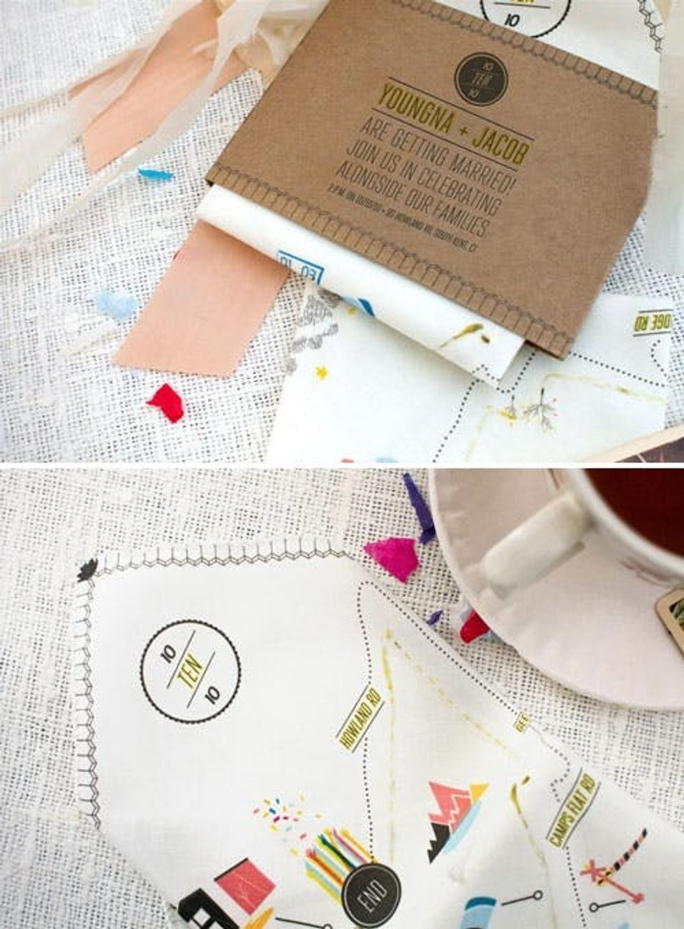 Jacob Krupnick, worked with designer Kelli Anderson to create custom vintage-style handkerchiefs to serve as invitations to their wedding. (And P.S. If you haven't seen Youngna and Jacob's most recent creative work, Girl Walk // All Day, get to it!)