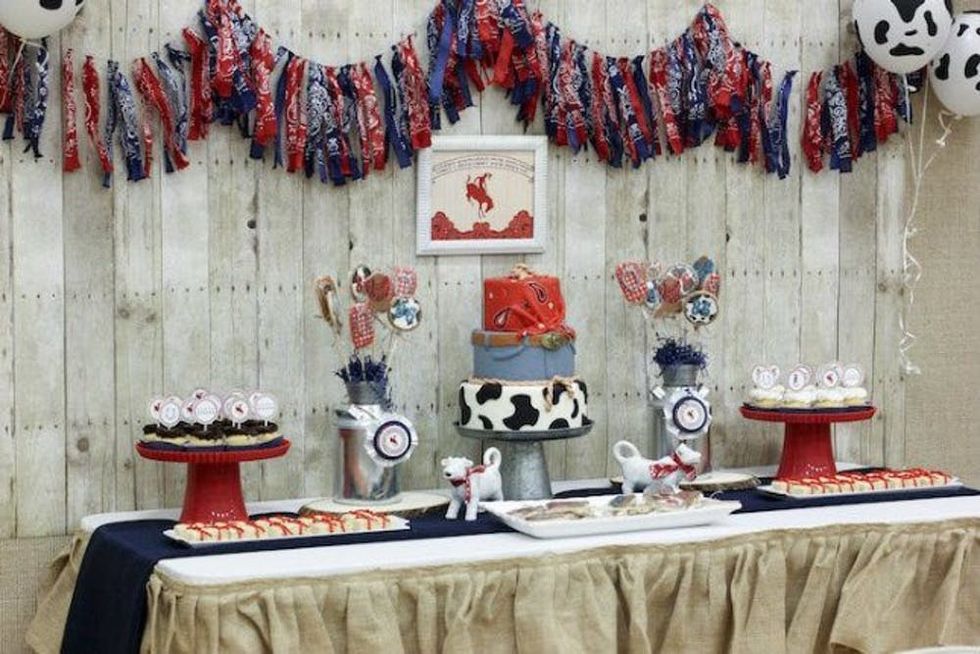 2. Cowboy Country: Burlap, BBQ, and a rustic feel make this shower less “Ah, how sweet” and more, “Oh, how rad!” Dress up the shower tables with sack-like fabric, pick up some Western prints at a local antique shop, and choose a down-on-the-farm pattern for your sweets. (via Kara’s Party Ideas)