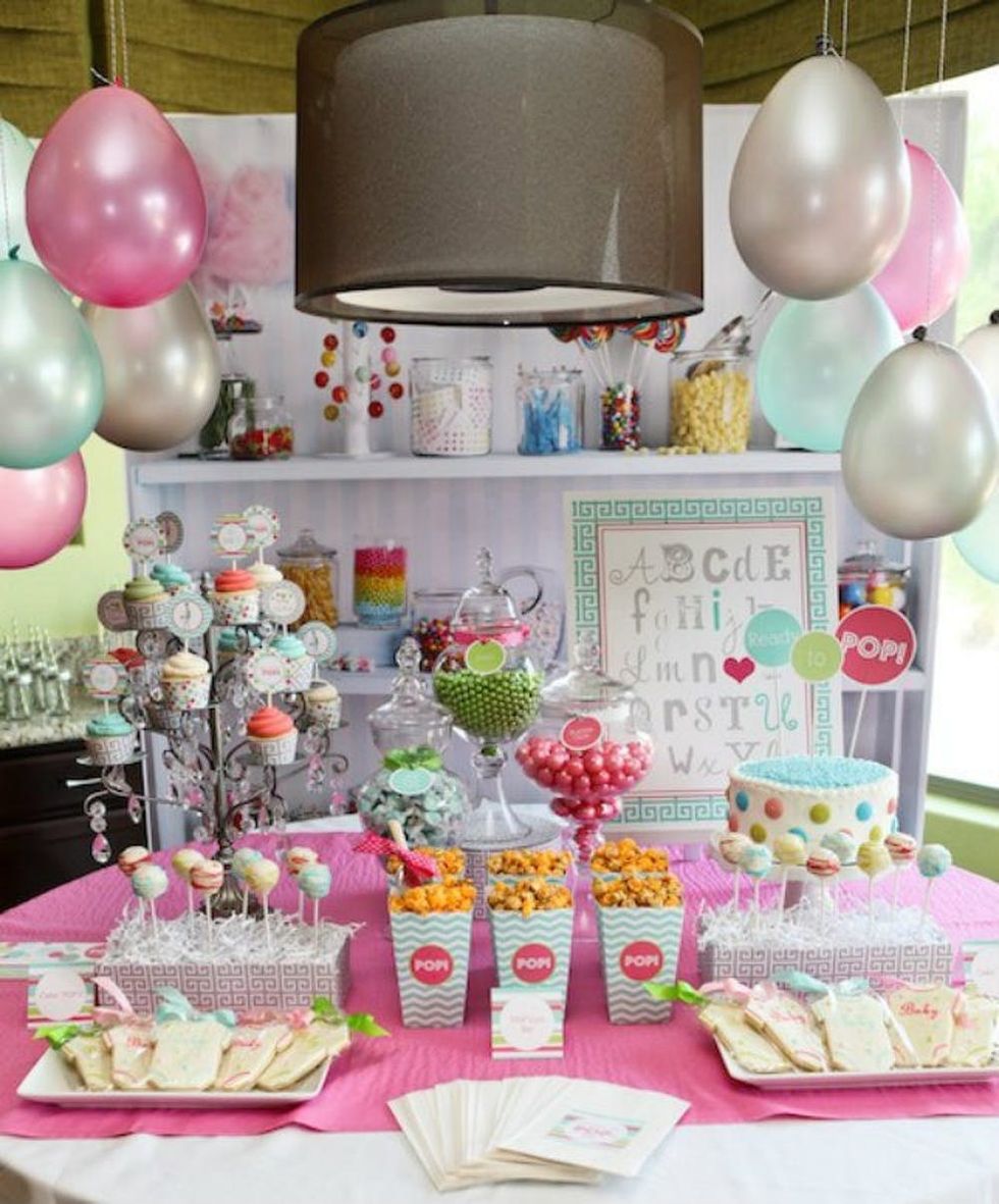 1. Baby Books: They’re never too young to be introduced to reading. This playful baby shower theme can highlight a handful of classic children’s books, or be personalized to just feature your very favorite, like If You Give a Mouse a Cookie, Green Eggs and Ham, or Madeline. Ask each of your guests to bring their favorite childhood book as a gift, and incorporate your baby’s growing library into the display. (via Hostess With the Mostess)