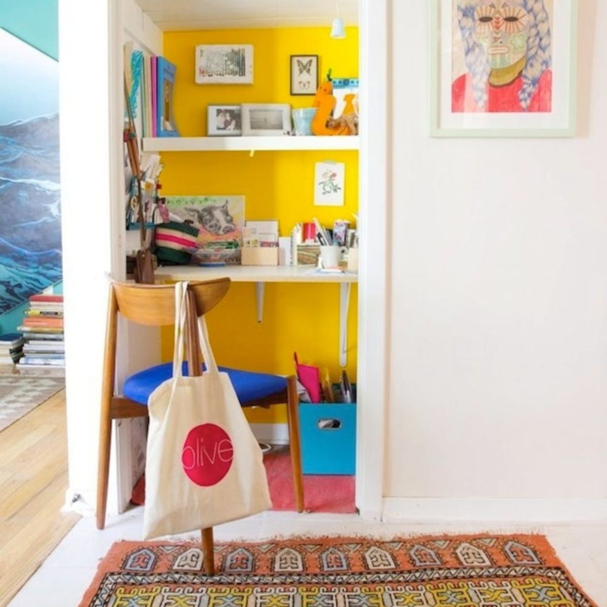 3. Find the Quirky Nooks: If you live in an older house or apartment, there might be a secret nook that you don’t even know about. This old dumbwaiter station was just the right size to tuck a desk and a computer for an office that isn’t in the way at all. (via Lonny)