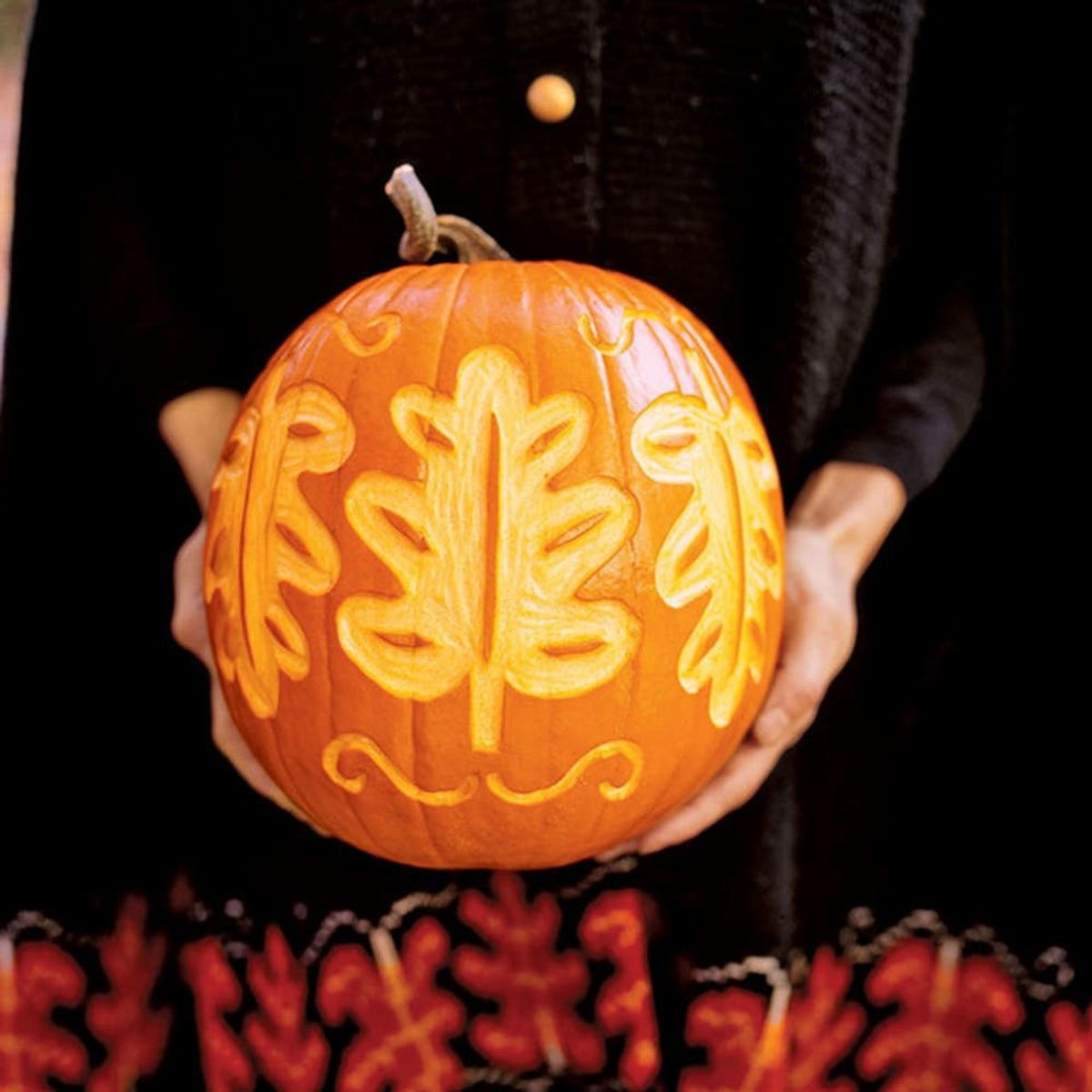 15. Fall Leaves Carved Pumpkin: Everything you love about autumn in one place. (via Country Living)